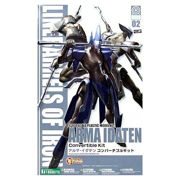 ARAMA IDATEN is a convertible model kit and comes with mass production Arma armor parts. As a special feature when you use ARMA IDATEN as the body base, you can display the mecha as mass production ARAMA. Features easy snap-fit assembly and pieces cast in different colors. The Arma mecha both stand 4 3/4 inches tall, and are perfectly in scale (1/144) with Linebarrels. With approximately 20 points of articulation, the Arma or Arma Idaten has tremendous capability when it comes to dynamic posing! Comes with special display base for flying poses. Pictorial assembly instructions are included to help guide you in making this plastic model kit into the awesome combat machine.